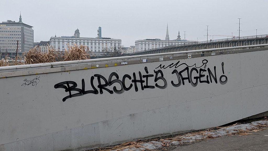 „Burschis in die Bälle treten“ – mit dieser unverhohlenen Aufforderung zu Gewaltstraftaten bewerben derzeit anonyme Antifa-Sujets die offizielle Demonstration des Bündnisses „Linz gegen Rechts“ am Tag des Burschenbundballs. Zudem ist seit Wochen auf der AEC-Rampe, also unmittelbar beim Treffpunkt der Demonstranten, der Aufruf „Burschis jagen“ aufgesprayt. Der Linzer Sicherheitsstadtrat Dr. Michael Raml hierzu: „Die wiederkehrenden Gewaltandrohungen gegen friedliche Ballbesucher aus dem politischen Umfeld dieser Vereinigung – die man ohnehin besser als ‚Bündnis gegen Linz‘ bezeichnen sollte – sind absolut untragbar. Die Stadt wurde bereits mehrfach Zeuge der linken Enthemmung, als etwa Linksextremisten die Fassaden des Kaufmännischen Palais mit Drohungen beschmierten und auf das Auto des Landeshauptmann-Stellvertreters Manfred Haimbuchner einschlugen, in dem auch seine Frau saß. Wie lange möchte der Bürgermeister diesem gewalttätigen Treiben noch zusehen?“, fragt Raml.